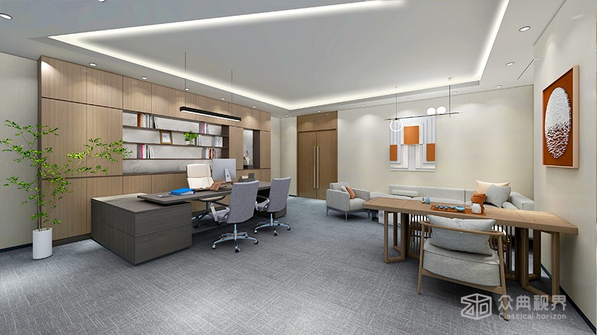 會議室和經(jīng)理室的玻璃隔斷采用弧形造型,讓空間比較靈動,而不死板。走道打印茶水區(qū),采用獨立空間設(shè)計,橙色非常的醒目,成為辦公區(qū)的亮點。